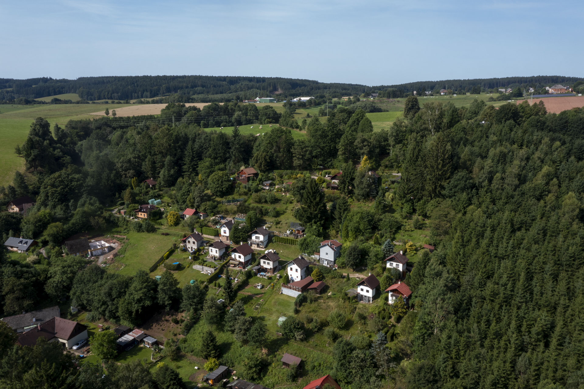 Chata v osobním vlastnictví je součástí menší chatové osady. Pozemek je oplocený, s výhledem do zeleně a dostatkem soukromí. Má vlastní elektroměr, septik a rozvod užitkové vody ze společné studny nad osadou. Užitková voda je k dispozici od jara do podzimu. Pitnou vodu si majitelé vozí, případně používají vlastní úpravnu.