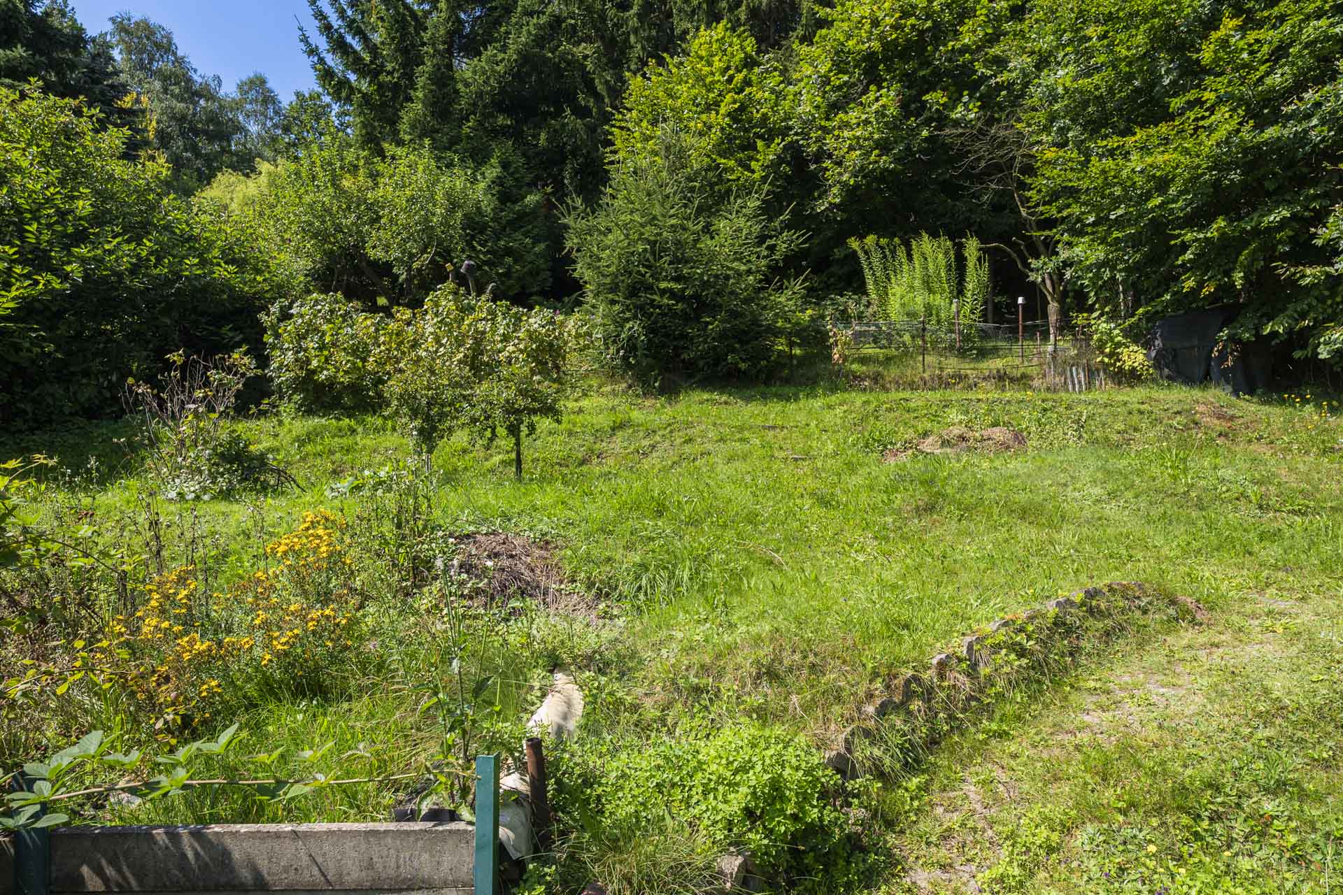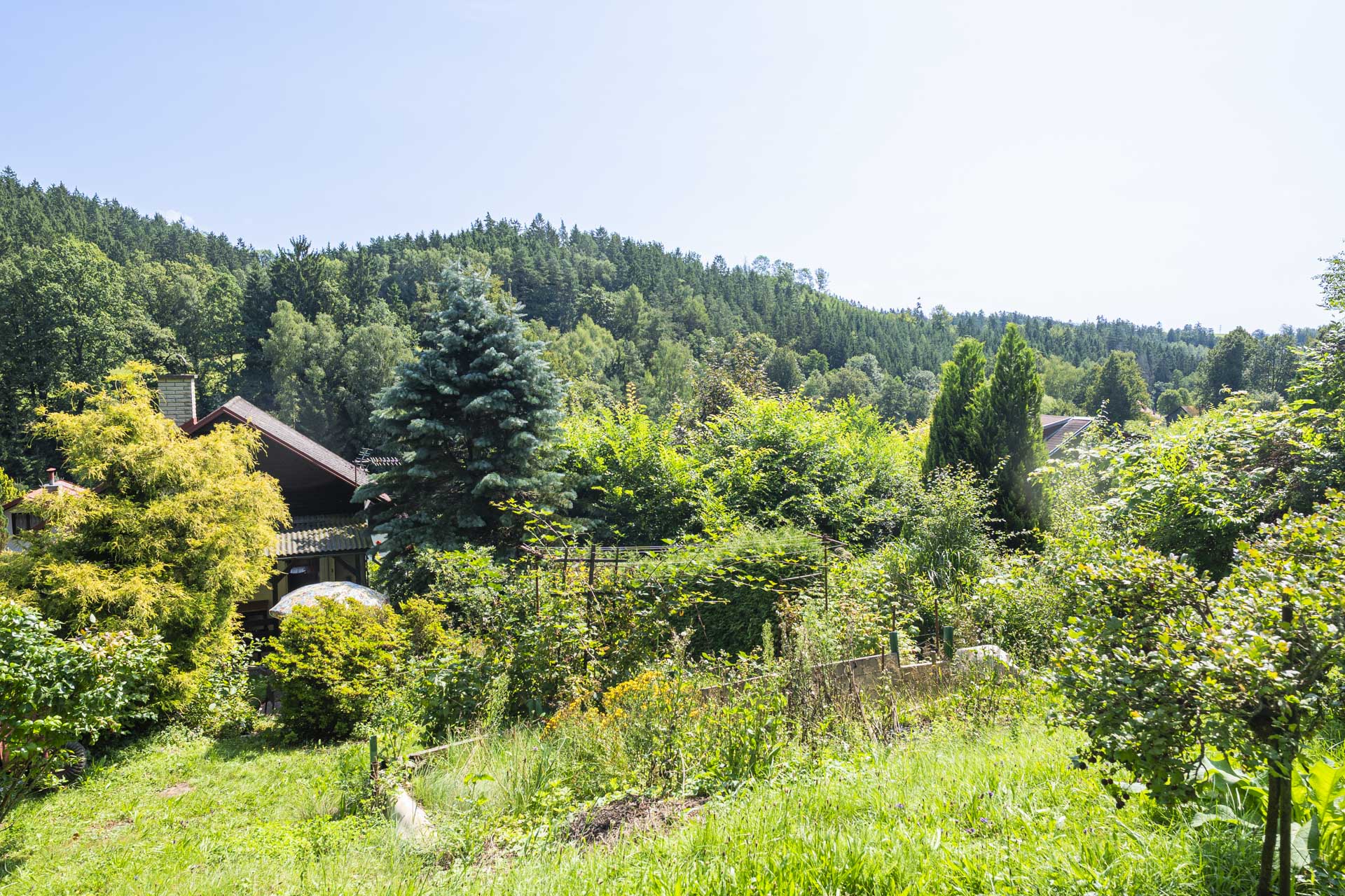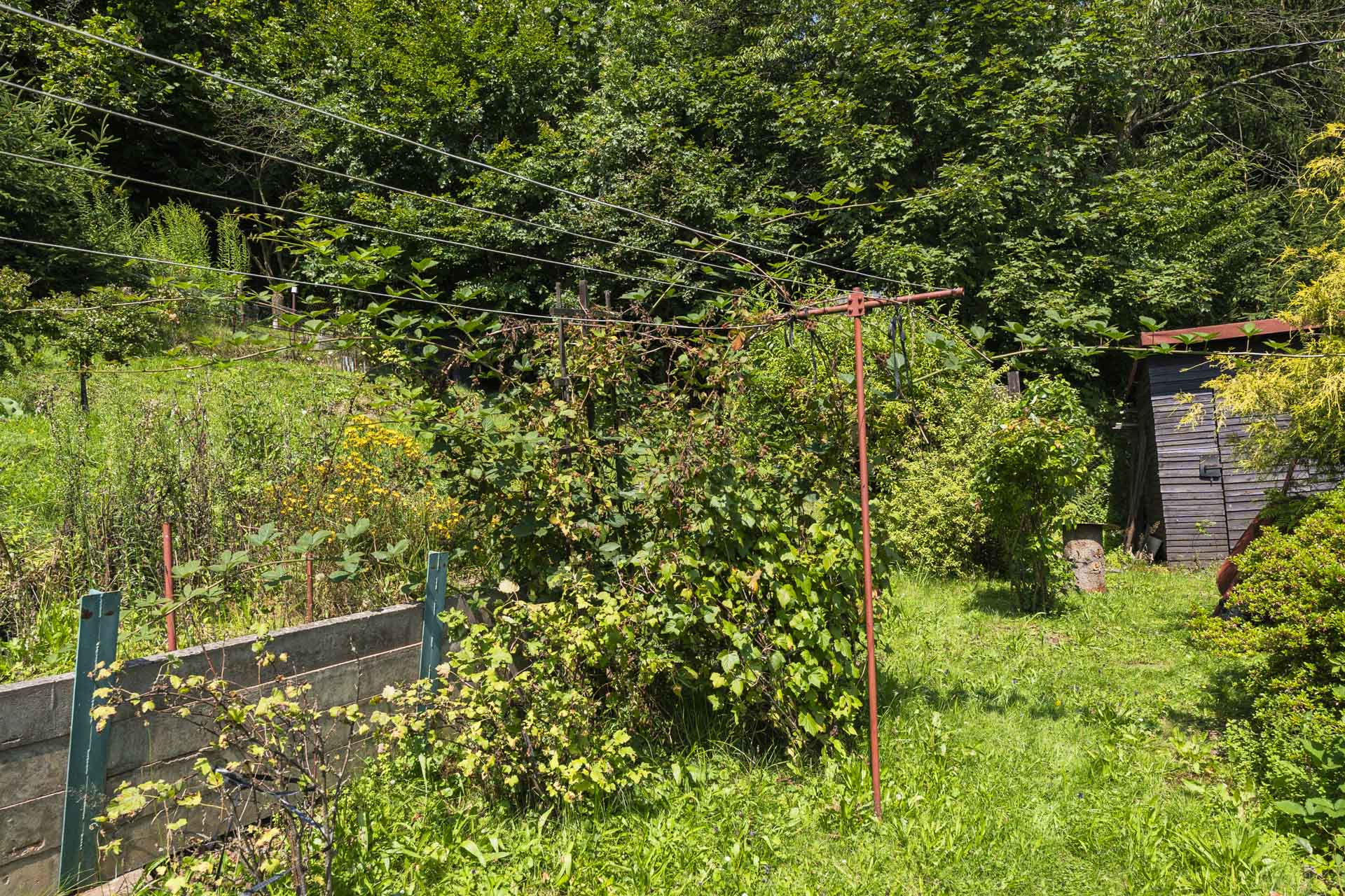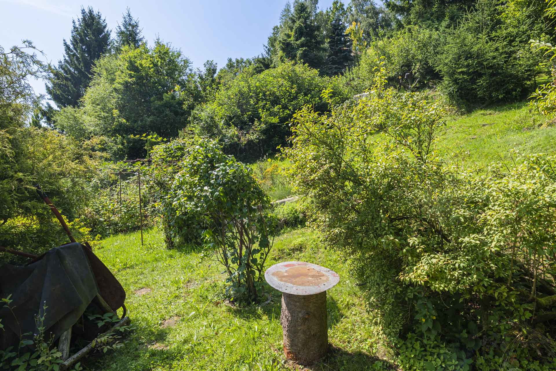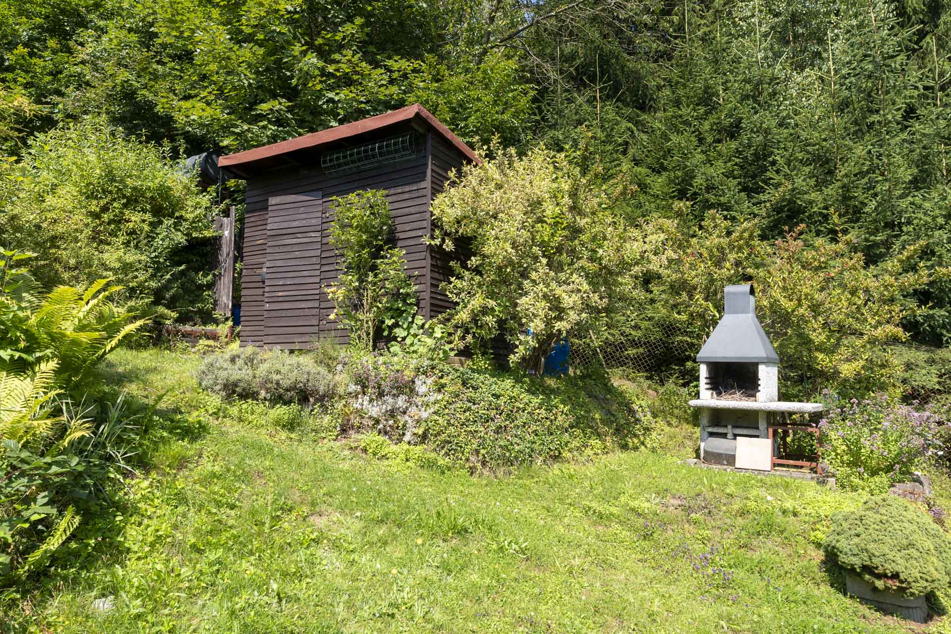 Na zahradě najdete kůlnu, venkovní krb, nespočet ovocných keřů – rybíz, borůvky, maliny, ostružiny, angrešt a malé jezírko. Letos majitelé připravili i plochu pro nový záhon nebo skleník – jeho podobu už nechají na vás. Součástí prodeje je také většina zahradnického nářadí, elektrická sekačka a zásoba dřeva na topení.