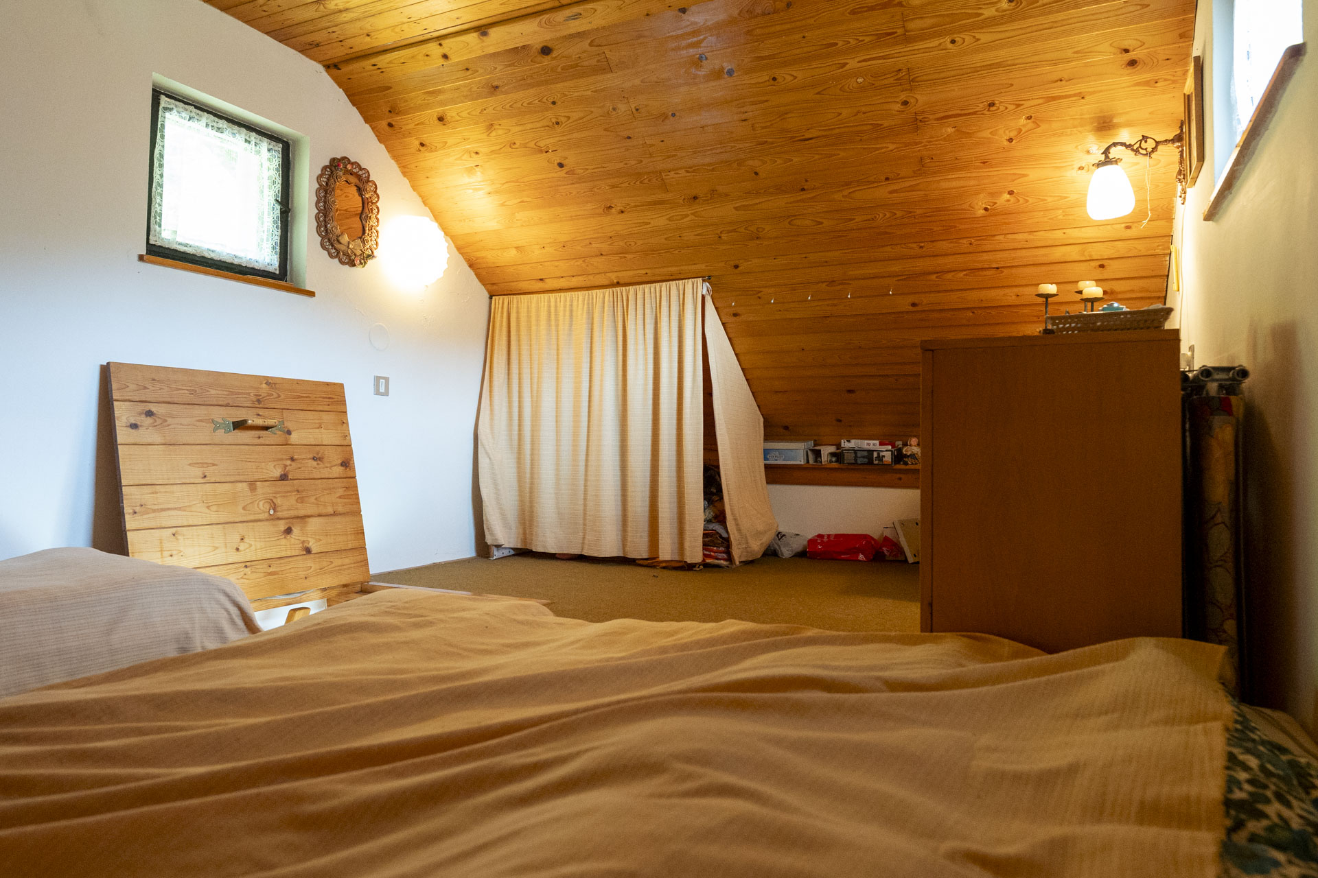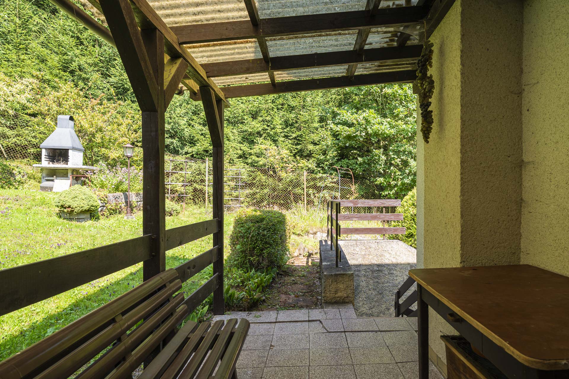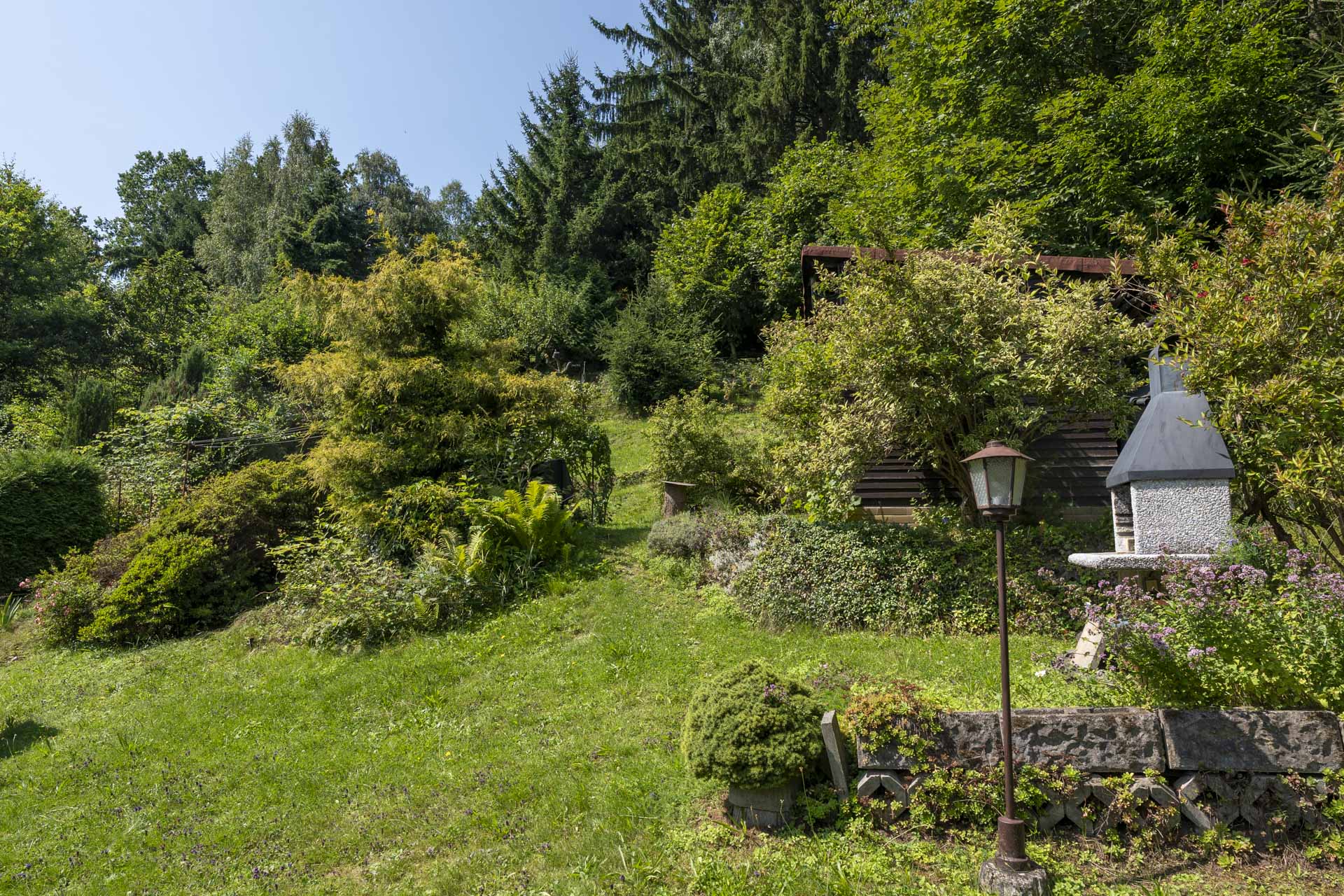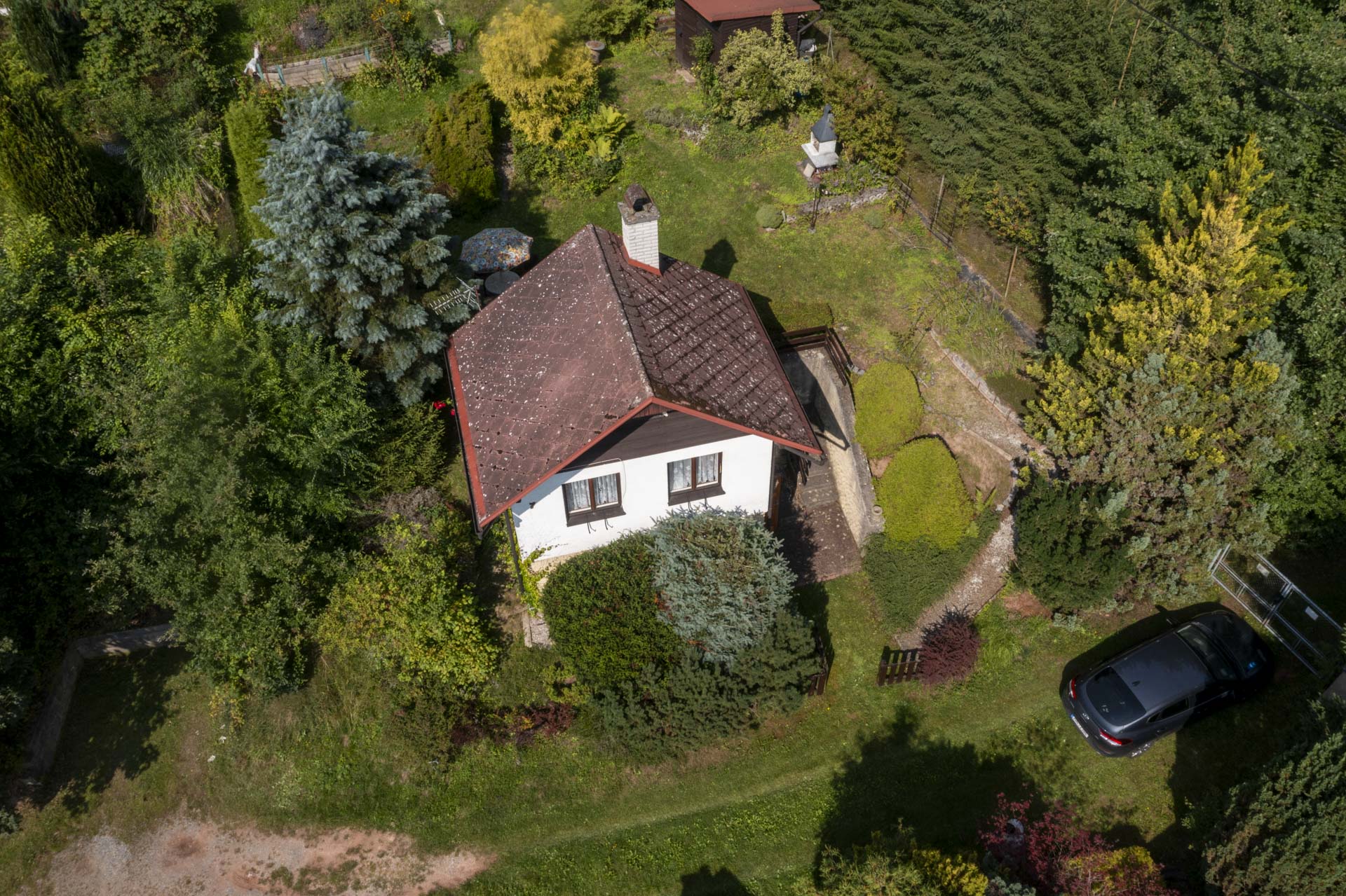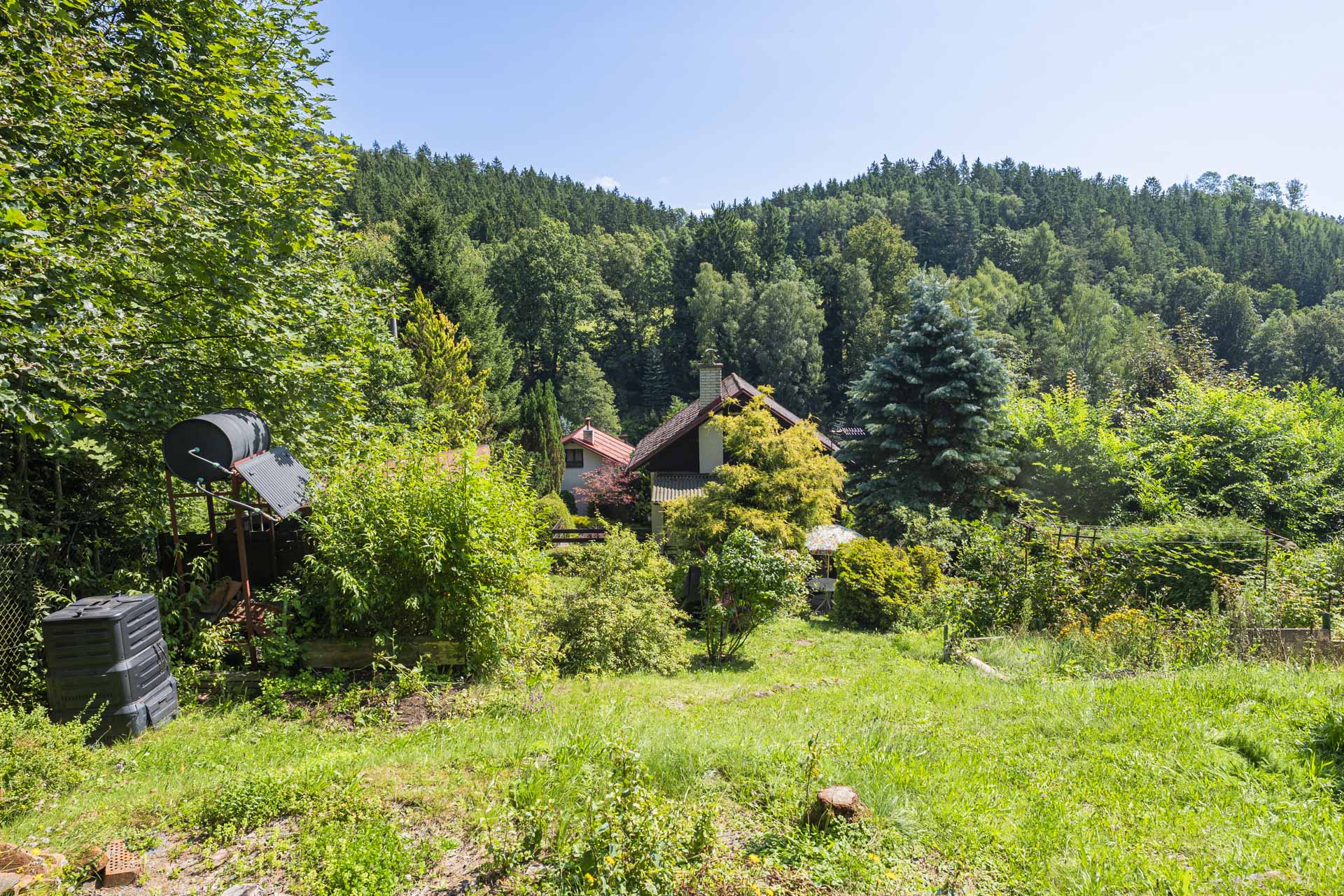 Na zahradě najdete kůlnu, venkovní krb, nespočet ovocných keřů – rybíz, borůvky, maliny, ostružiny, angrešt a malé jezírko. Letos majitelé připravili i plochu pro nový záhon nebo skleník – jeho podobu už nechají na vás. Součástí prodeje je také většina zahradnického nářadí, elektrická sekačka a zásoba dřeva na topení.